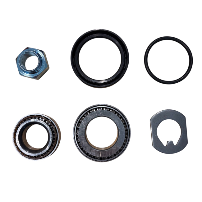 Kit réparation avec roulements sans bouchonRoulement 1 : Diamètre intérieur 25mm | Diamètre extérieur 47mm | Épaisseur 15mmRoulement 2 : Diamètre intérieur 32mm | Diamètre extérieur 58mm | Épaisseur 17mmJoint spi : 45x60x10Rondelle de sécuritéÉcrou de moyeuJoint torique en caoutchouc